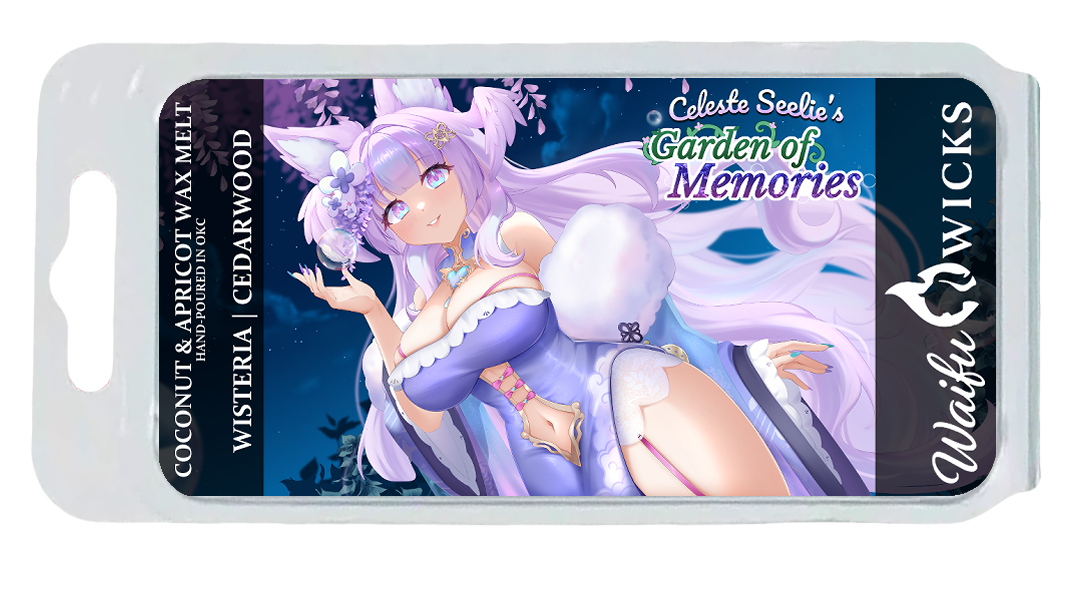 Did you know, scents have a direct link to your memories? It's why a scent will often bring you back to a time you're fond of, and why the Goddess of Memories, Celeste Seelie, has created a comforting candle, using wisteria, cedar, and a warm summer rain, so that her scent will let the brightest memories bubble and flow, creating new memories for you to look back on in the future.