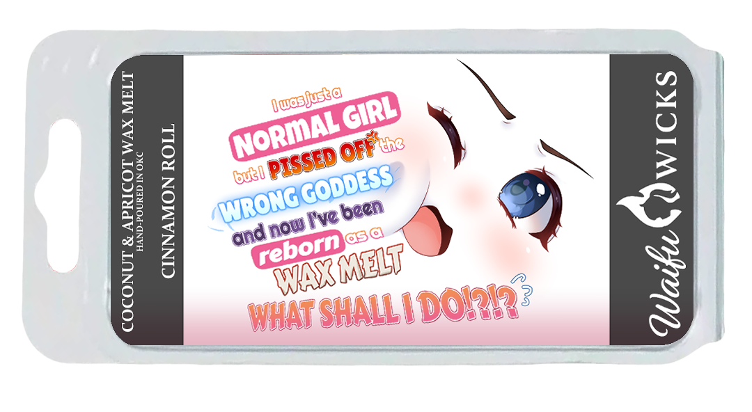 Ellen-chan found a mirror nearby to confirm that, once more, she had been turned into yet another scented product, by yet another Goddess “I gotta stop pissing Goddesses off… First a room spray, and now a wax melt? Oh no, what shall I do!?”